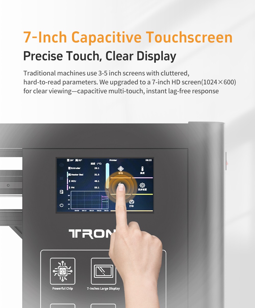 We accept returns within 30 days of receipt for printers, the extruder kit within 3 months replace, and a 1-Year warranty for all major parts which include motor, screen display, and hotbed.