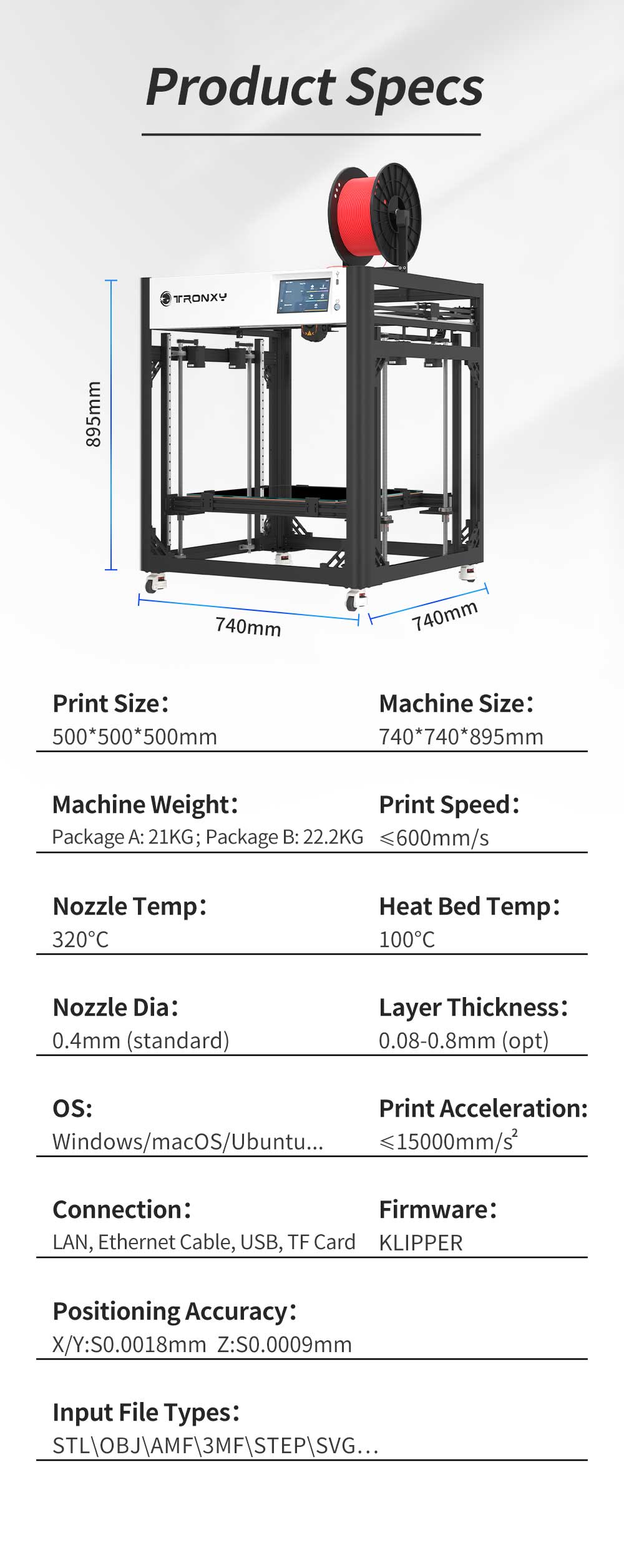 VEHO 500 PRO 3D Printer with Klipper Firmware,Support High Speed Printing / China / GLASS / VEHO 500 PRO / By Air